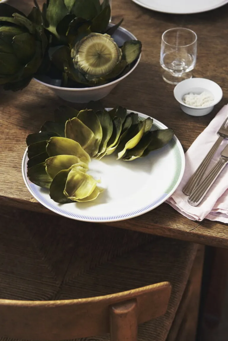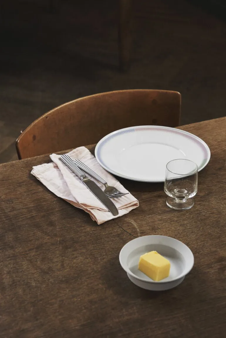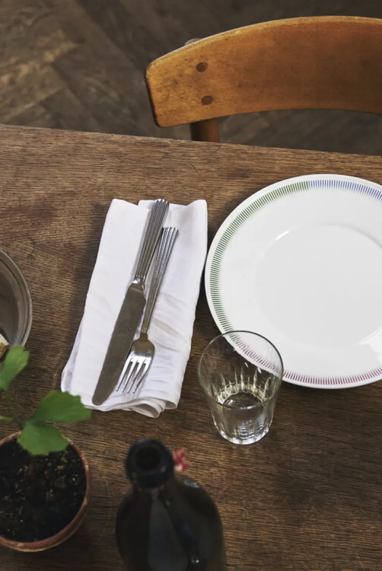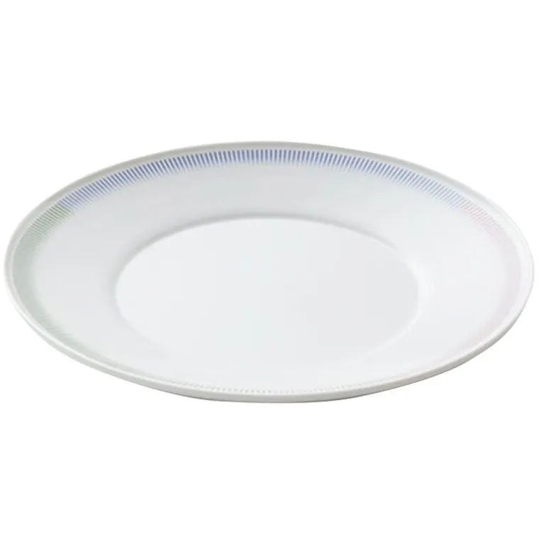 Tallriken PC från 1616 / arita japan är smyckad med ett vackert randigt motiv i flera olika färger, som nästan ser ut som skuggningar i en färgteckning. Mattallriken passar lika bra till festbord som till att piffa upp en enkel vardagsmåltid.