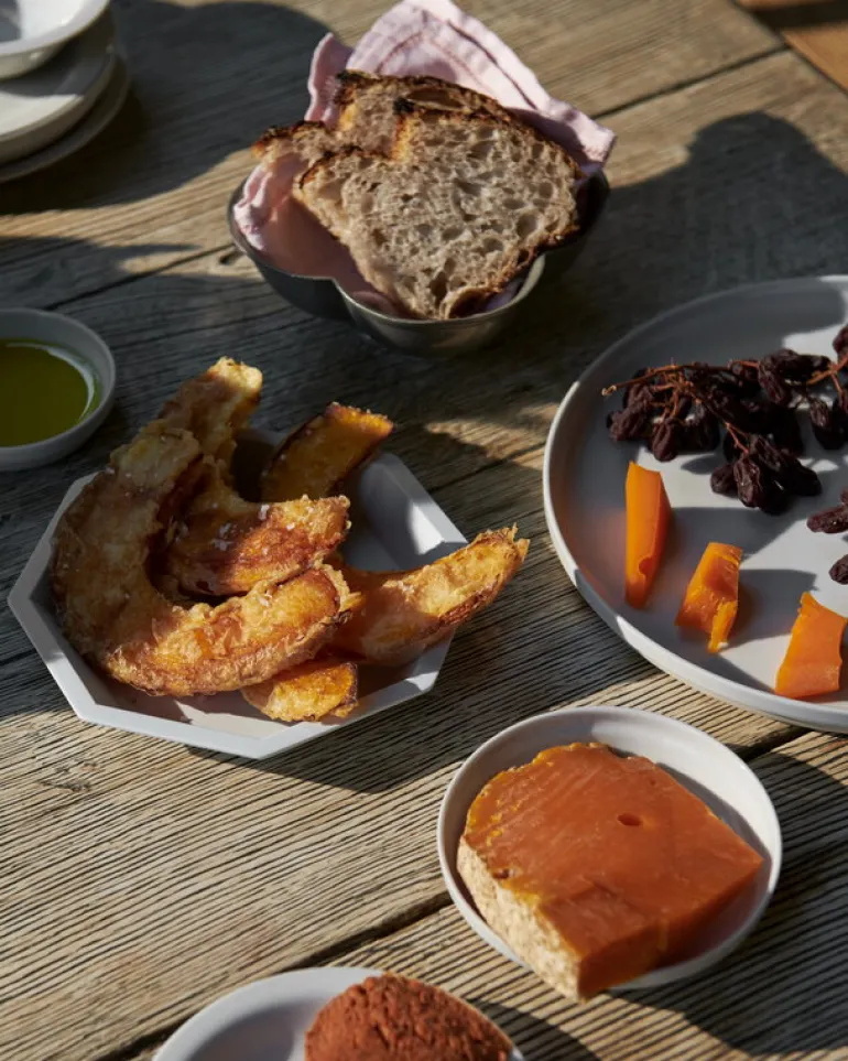 Porslinskollektionen TY Anise är tillverkad av lera med en traditionell japansk teknik som använts i staden Arita i årtionden. Metoden och materialet gör att servisen blir extremt hållbar: den oglaserade tallriken har hög motståndskraft mot både värme och fläckar. Eftersom leran som används kan innehålla spår av järn varierar tallrikarnas nyans något, vilket innebär att varje tallrik är helt unik.
