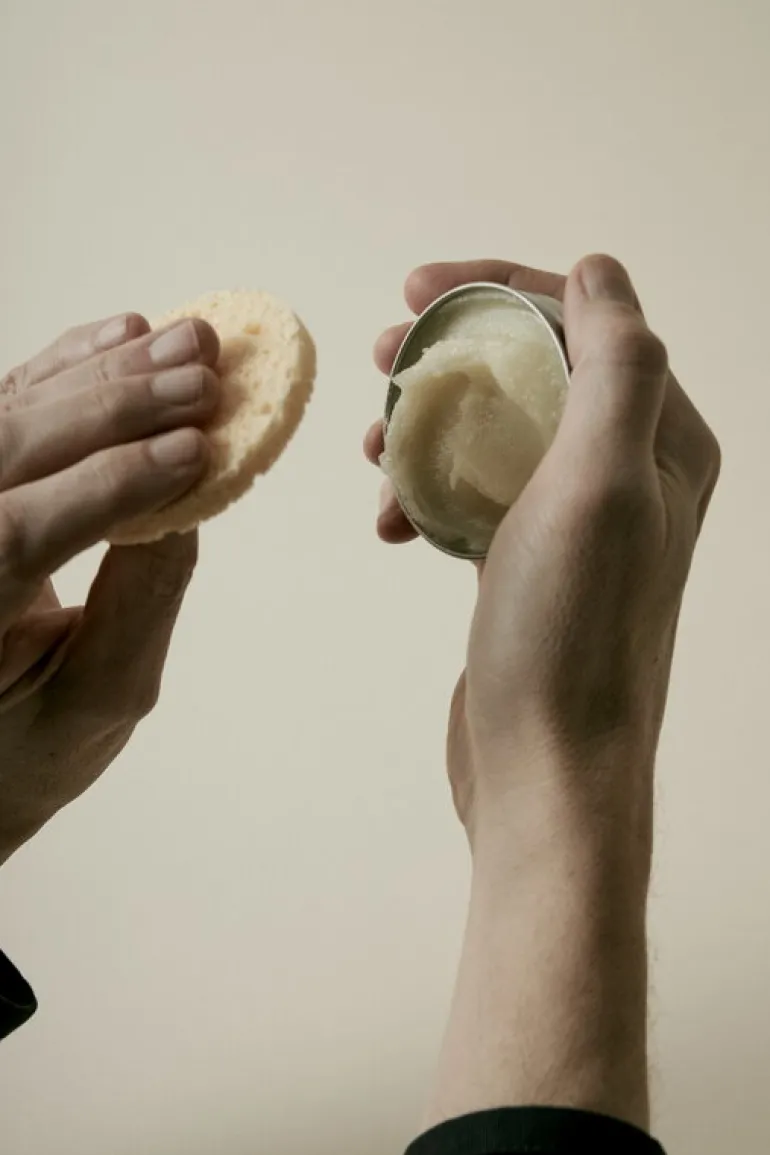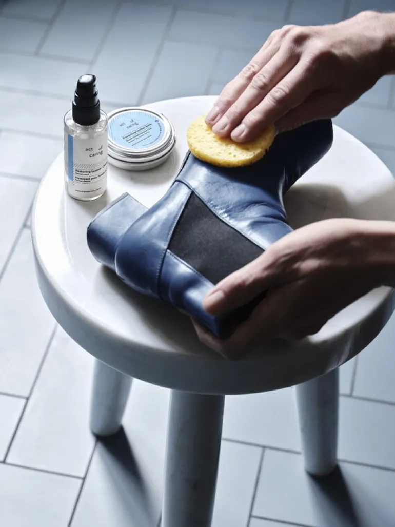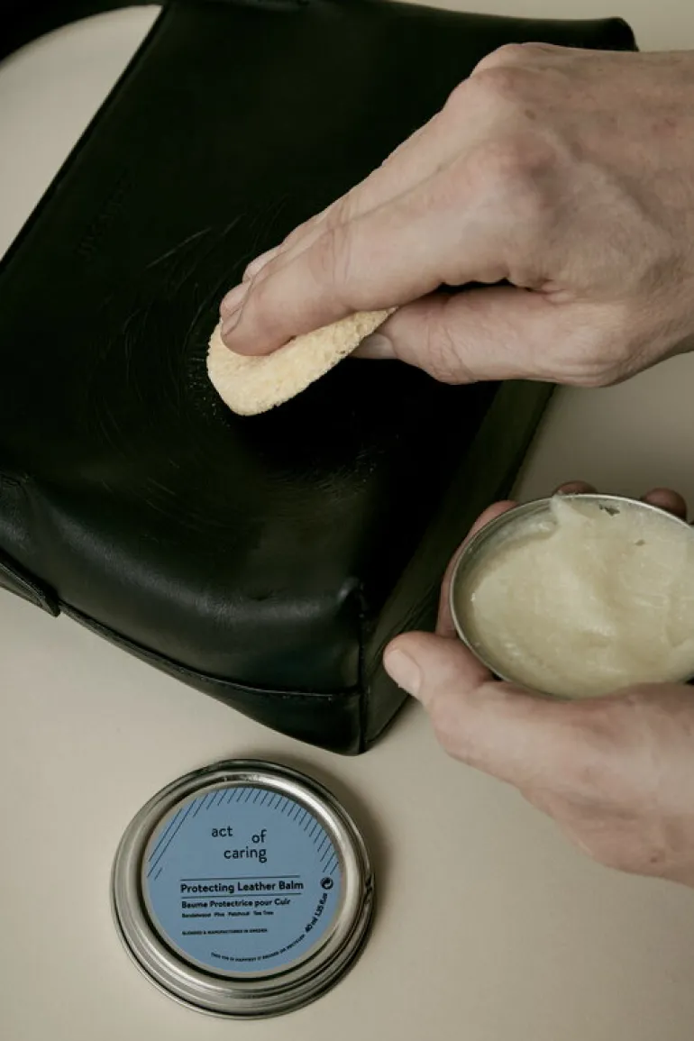 Act of Carings Protecting Leather Balm är en mild produkt som håller dina skor, handväskor och läderfåtöljer vackra i många år framöver. Balsamet innehåller naturliga sandelträ- och tea tree-oljor som håller lädret återfuktat och skyddar det från fukt och fläckar. Den lilla aluminiumförpackningen på 10 ml får enkelt plats i handväskan eller resväskan – nu kan du vårda dina läderprodukter var du än reser!
