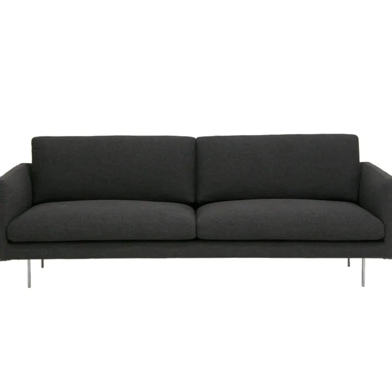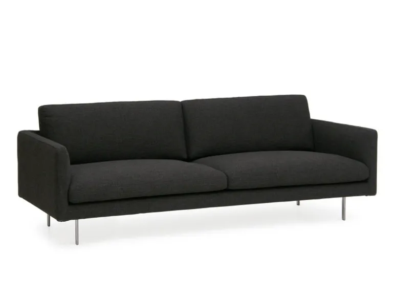 Basel från Adea är en charmig soffa tack vare sina vinklade former, balanserade proportioner och sin komfort. Soffans sits, som klätts i tyg, vilar på eleganta aluminiumben som ger den en svävande karaktär. Fjäderfyllda kuddar kompletterar soffan med naturlig mjukhet och en lyxig känsla.