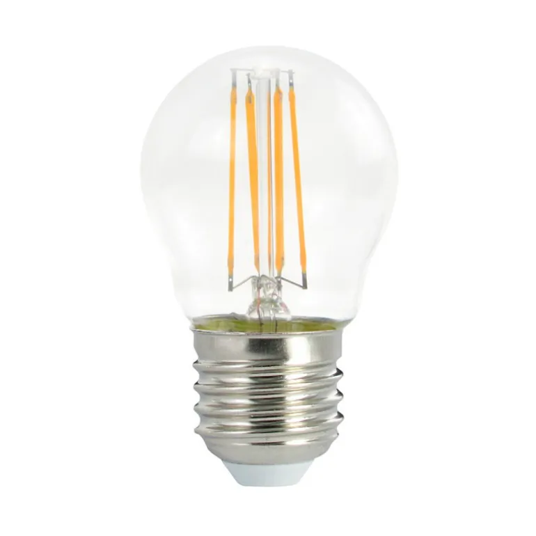 Den klara P45 filamentlampan har LED-trådar som avger ett mjukt, varmt ljus. Filamentlampor passar särskilt väl på ljuskronor och, tack vare sin rundstrålande ljusdistribution, taklampor och bordslampor.