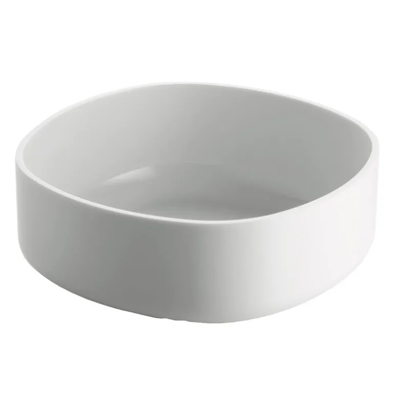 Alessis badrumsserie Birillo är tillverkad av tålig, lättstädad akryl med en vit högglansfinish.