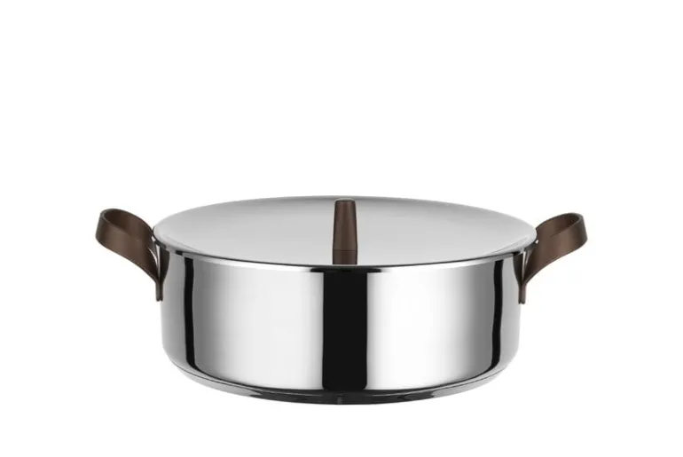 Edo kastrullsetet från Alessi består av fyra kastruller i rostfritt stål och tre lock, inklusive: