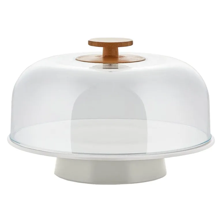 Alessis Mattina tårtfat erbjuder en vacker och funktionell plats för att servera både söta och salta läckerheter. Tårtfatet skapades av det schweiziska designstudion BIG-GAME med uppdraget att fylla vardagliga rutiner med njutning. Det eleganta och stilrena tårtfatet har en fot av porslin och ett transparent akryllock med ett knopp av bambu.