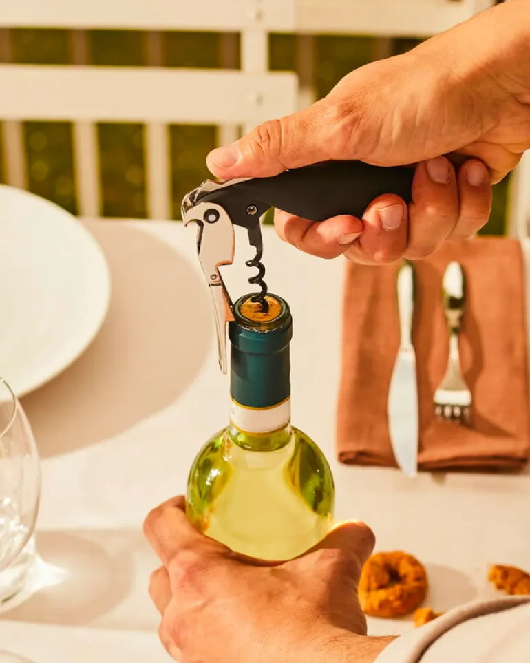 Alessis Parrot-korkskruv har en charmig papegojliknande design och är dekorerad med ett färgglatt Proust-mönster. Korkskruven är designad av Alessandro Mendini och är tillverkad i aluminium och plast, och passar både för hemmabruk och professionellt bruk. Dess fickvänliga form gör den enkel att bära med sig, den passar till och med i förklädesfickan.