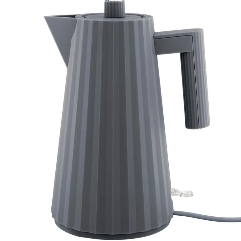 Plissé vattenkokare från Alessi hämtar inspiration från mode och arkitektur. Dess tredimensionella yta påminner om plisserat tyg och har en dynamisk, skulptural silhuett. Plissé, som designades av Michele De Lucchi år 2018, är perfekt för att koka och servera hett vatten, tack vare dess värmeisolerade bas som gör att man enkelt kan placera vattenkokaren på en bordsskiva. Vattenkokaren har ett kalkfilter och en säkerhetsfunktion som automatiskt stänger av strömtillförseln om det inte finns tillräckligt med vatten inuti. Värmeelementet är dolt i basen för att förenkla rengöring.