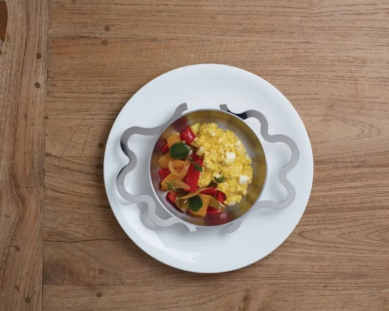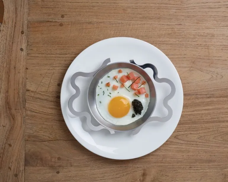 Alessis äggpanna Tegamino har formgivits av Alessandro Mendini med rådgivning från den italienska experten och gastronomen Alberto Gozzi. Tegamino har en behändig storlek, ett rejält lock i stål och två handtag med böljande former, som gör den både sofistikerad och festlig på samma gång – den blänkande pannans siluett liknar nämligen ett stekt ägg. Tegamino är inte bara perfekt till äggstekning, utan också till äggkokning, och dess lättsamma framtoning gör den dessutom till ett fantastiskt serveringsfat.