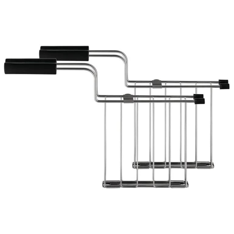 Alessis brödrostställ Toru är utformade för att göra det enkelt att ta ut nyrostat bröd ur den varma brödrosten. Stället i rostfritt stål med rejäla plasthandtag är designat för att komplettera den djärva estetiken i Toru-serien, skapad av Nendo.