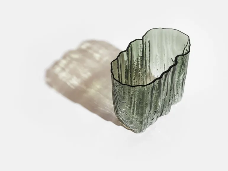 Antrei Hartikainens ofantligt vackra Melt-vas är tillverkad i samarbete med Lasismi glasstudio i Riihimäki, Finland. Den oförglömliga designen hos de munblåsta Melt-vaserna hämtar inspiration från vattnets rörelse och dess konstanta omvandling från en form till en annan – glasets levande textur påminner om våris som delvis smälts av solen, eller sjöytan som rör sig sensuellt i sommarbrisen. En unik blåsteknik skapar Melt-vasens intressanta tredimensionella utseende, och gör att varje vas blir ett unikt och vackert konstverk.