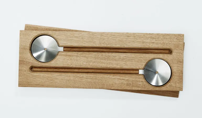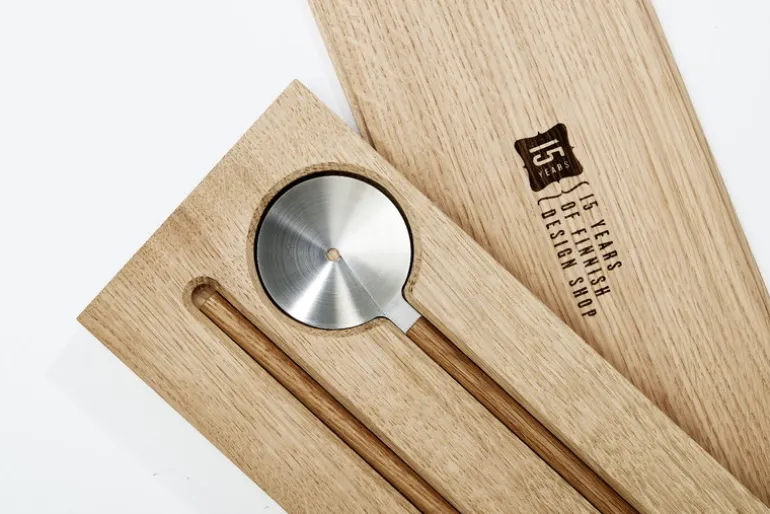 Taite-salladsbestickens design grundades på enkla former och högkvalitativa hantverk. Designen skapades särskilt för Finnish Design Shops jubileumskollektion och baseras på en laserskuren metallbit, som designern och skåpmästaren Antrei Hartikainen böjt till en koppliknande form med ett hål i mitten innan den fästes till ett handtag i ek med hjälp av kilar i bok. Det naturliga kornet och den simpla formen på handtaget utmärker den böjda formen på metallbiten vilket ger salladsbesticken deras namn, Taite (finska för ”ett veck”). De vackra minimalistiska salladsbesticken kommer i en handgjord låda av ek.