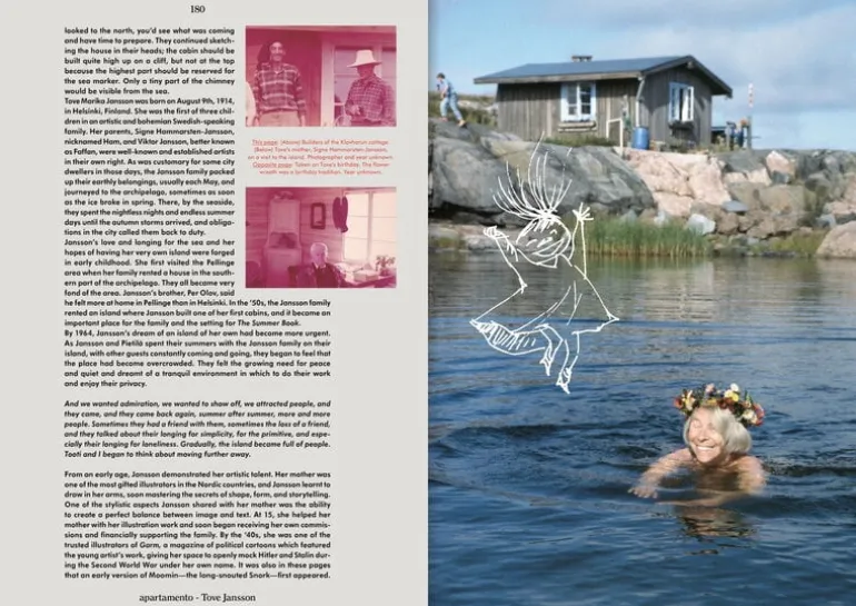 Apartamento är en internationell, stilsäker inredningstidning som sedan 2008 har gett en bred överblick över modern inredning, design och livsstilstrender. Apartamento nummer 34 (höst/vinter 2024) kommer att fascinera finska läsare, då det innehåller en omfattande berättelse om Tove Jansson och hennes älskade Klovharu. Utöver skaparen av Mumintrollen innehåller detta nummer formgivaren Ronan Bouroullec, författaren Olivia Laing och konstnären Rose Wylie. Den livfullt illustrerade tidningen kan lämnas på soffbordet, där den är lätt att ta till sig och bläddra i de vackra sidorna om och om igen – och låta sig inspireras av bilderna och berättelserna.
