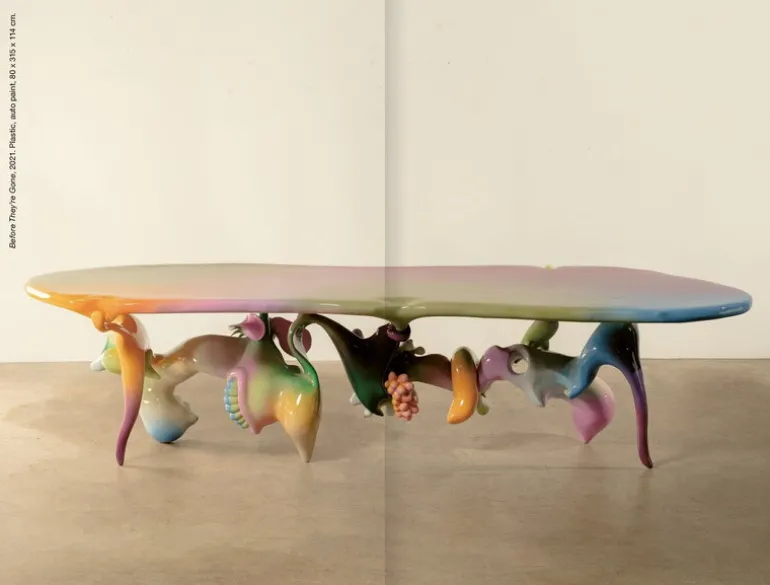 This is a walk through a decade’s worth of work by Misha Kahn. Glitzy, wobbly, hairy, witty—no number of adjectives aptly describes an output so vast, one which ranges from underwater mosaic sculptures and scrap-metal chaise longues to a gem-encrusted, wrist-worn, labyrinth-style ball game. Neither strictly an artist nor a designer, Misha himself emphatically avoids categorisation for the very real fear it might box him in and close off fresh, breakable ground. It’s this boundless energy for every new material or technical challenge, combined with his singular ideas and aesthetics, that has made Misha a leading creative voice of his generation.