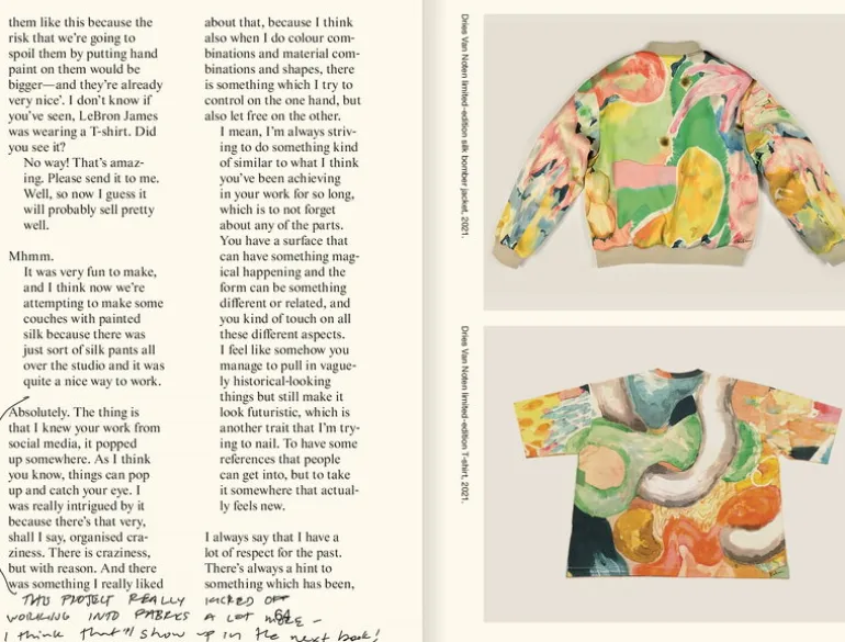 Misha Kahn: Casually Sauntering the Perimeter of Now, utgiven av Apartamento, slår upp portarna till Misha Kans färgglada värld med sprudlande maximalistiska kollageverk. Den första boken av den amerikanske konstnären och formgivaren är fylld med livfulla bilder av hans arbeten och skisser, som kryddats med korta handskrivna anteckningar och samtal med kollegor och vänner. Boken, med förord av intendenten och författaren Glenn Adamson, utgavs 2023 i samarbete med galleriet Friedman Benda. Den 210 sidor tjocka boken är försedd med ett elegant sammetsomslag med guldpräglad varmfoliering.