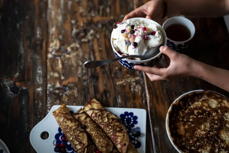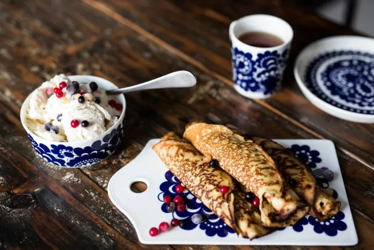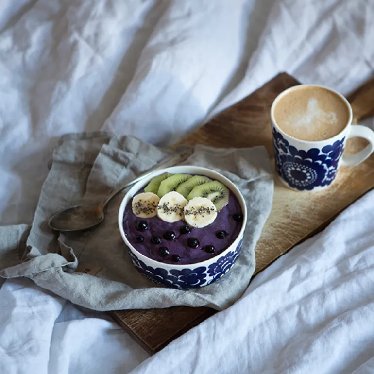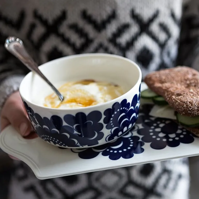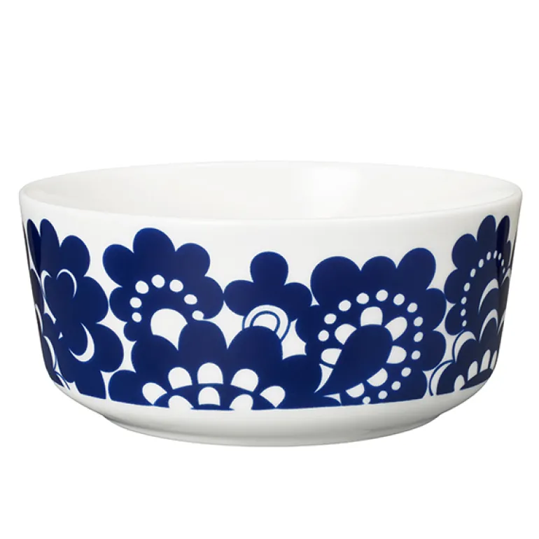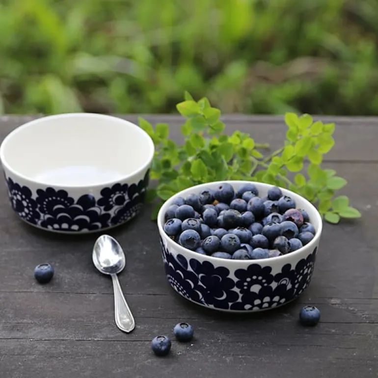 Skålen Esteri från Arabia är dekorerad med ett vackert blomstermotiv, designat av Esteri Tomula år 1973 som en hyllning till fabrikens hundraårsdag. Mönstret Esteri har fått sitt namn efter sin skapare, och porslinet var ursprungligen prytt i både blått och brunt. Det fräscha, blå-vita mönstret representerar och tillför ett förtjusande drag av finsk 70-talsdesign, som passar till middagar i all enkelhet såväl som till högtidliga tillfällen.