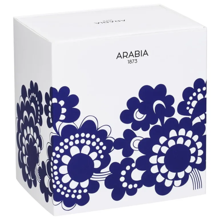 Arabias Esteri-vas har ett vackert blommotiv, designat av Esteri Tomula till ära för fabrikens hundraårsjubileum 1973. Mönstret Esteri, som är uppkallat efter sin designer, pryder ursprungligen porslin både i blått och brunt. Det fräscha blå-vita mönstret tillför en härlig touch av finsk design från 1970-talet till vardagen såväl som till festligheter.