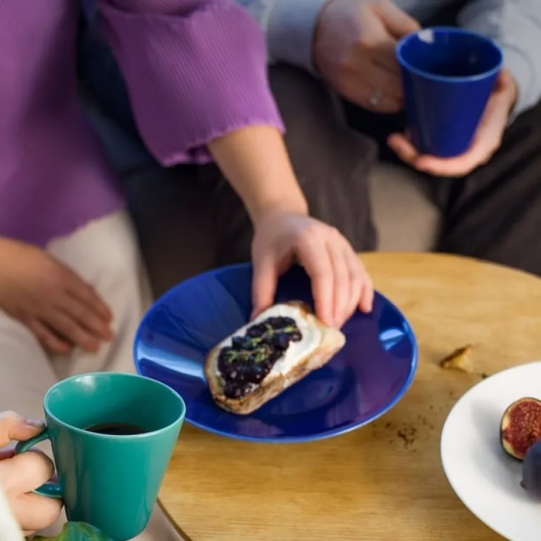 KoKo-tallriken är en del av Arabias populära KoKo-kollektion, designad av Kati Tuominen-Niittylä och Kristina Riska. Med moderna linjer och charmiga färger skapar KoKo-porslinet en glad atmosfär vid ditt bord, oavsett hur du väljer att kombinera dem – var inte rädd för att blanda olika former och färger eller lägga till delar från Arabias andra porslinskollektioner!