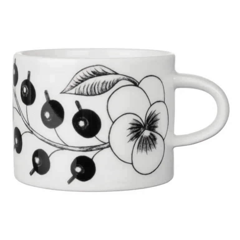 Paratiisi-koppen från Arabia är smyckad med svart och vitt som ger en grafisk touch till blommönstret.