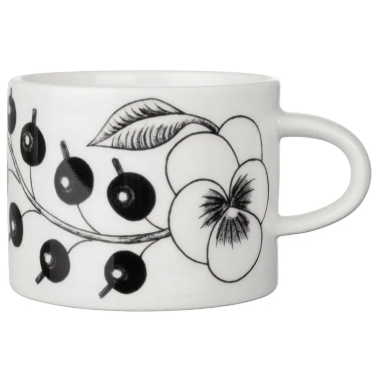 Paratiisi-koppen från Arabia är smyckad med svart och vitt som ger en grafisk touch till blommönstret.