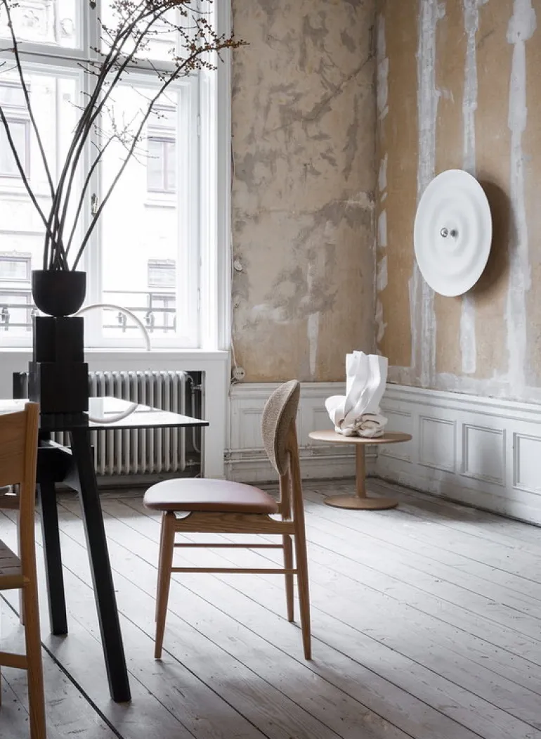 Stolen Outline skapades på en workshop som arrangerades av det japanska märket Ariake. Den danska designduon Norm Architects arbetade tillsammans med japanska hantverkare, i Japan. Där studerade fabriker och lager noga medan de samlade inspiration till stolen, som växte fram bit för bit. Först ritade formgivarna stolens kontur och sedan förfinades designen i samarbete med hantverkarna. De arbetade med stolens proportioner och små detaljer som det rundade ryggstödet, den böjda sitsen och de avsmalnande benen tills de var nöjda med ritningen. För att hedra denna process bestämde de sig för att döpa stolen till Outline.