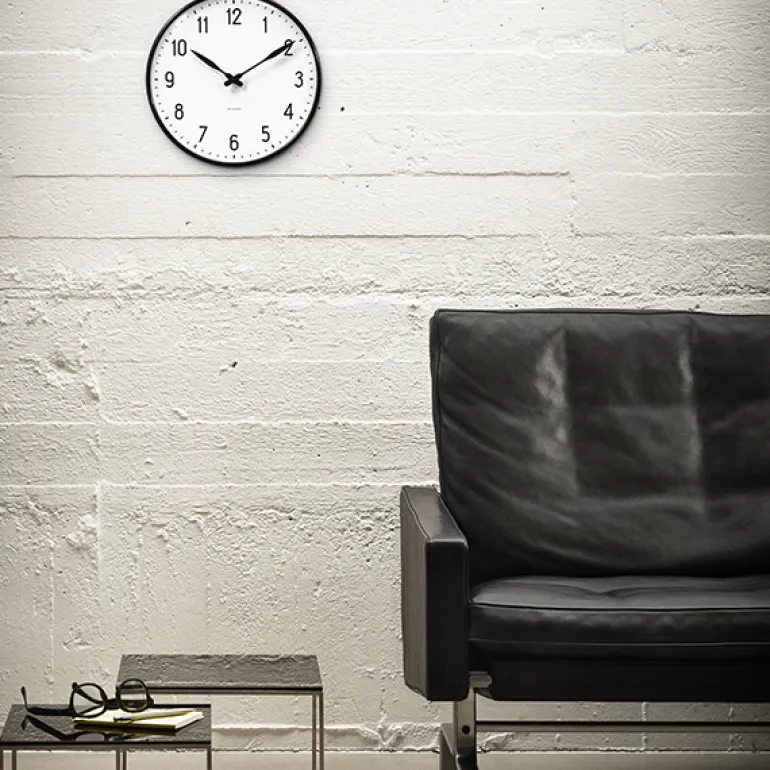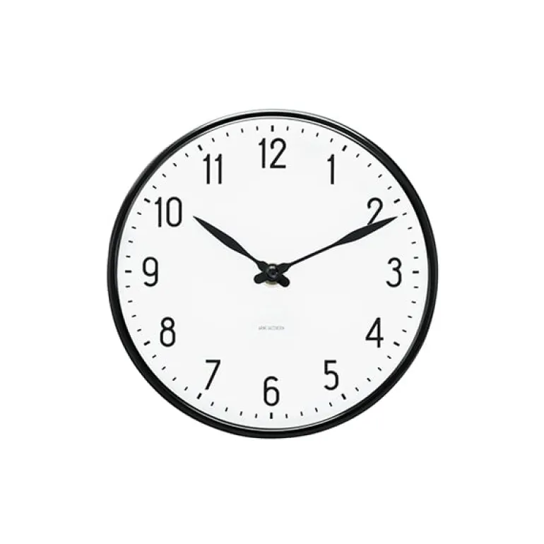Väggklockan AJ Station designades av arkitekten Arne Jacobsen för den danska elektroniktillverkaren Lauritz Knudsen 1941. Tillsammans bildar den enkla numreringen, de vackra visarna och det svarta aluminiumhöljet ett vackert väggur, som även går väl ihop med moderna interiörer. Väggklockan AJ Station finns i tre storlekar.