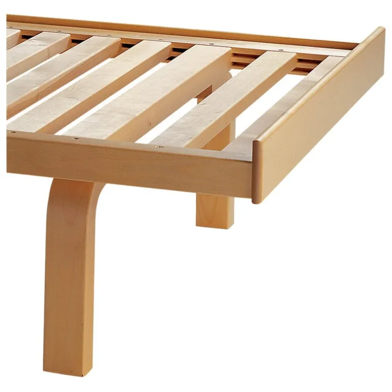 Arteks dagbädd 710 är en säng med flera användningsområden, formgiven av Alvar Aalto år 1933. I likhet med många andra av de möbler Aalto skapade har även dagbädd 710 försetts med de berömda L-benen: ramen och spjälbotten av björkträ vilar på låga ben formade som L. Björkens ljusa färg och starka struktur gör dagbädd 710 till en perfekt, minimalistisk soffa, gästsäng eller siestaplats. Du kan använda din egen madrass och dina egna kuddar eller kontakta vår kundtjänst och beställa madrasser och kuddar klädda i tyg från Artek.