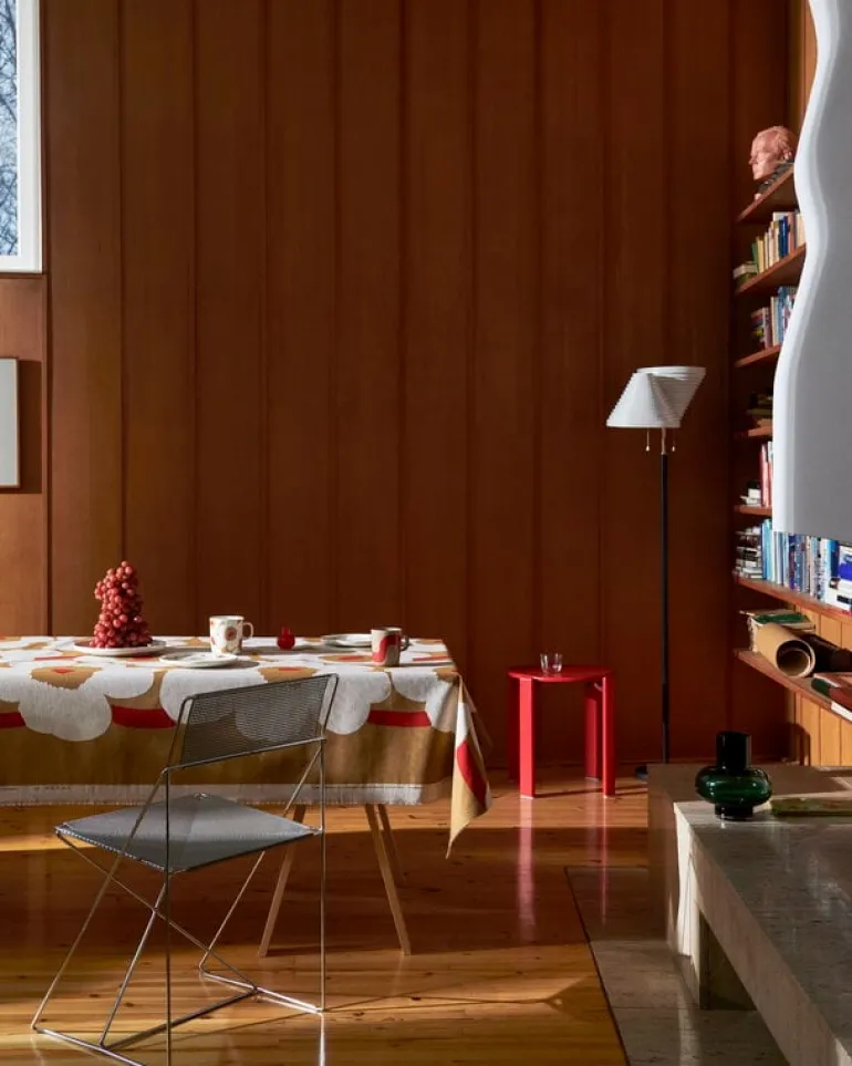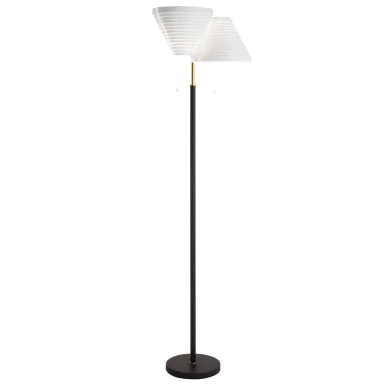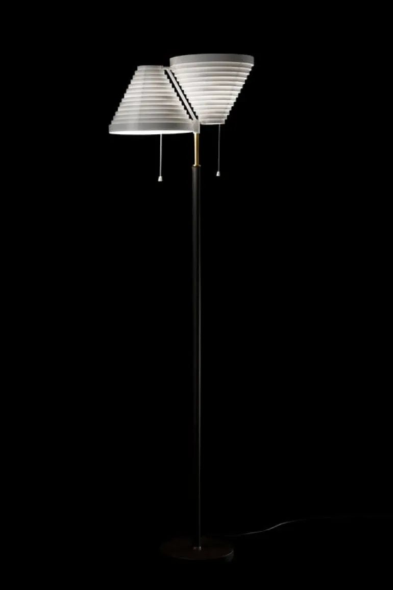 Arteks golvlampa A810 är enkel att känna igen på dess skulpturala skärmar som gör att ljuset flödar både ovan- och underifrån. Alvar Aalto designade ursprungligen lampan för National Pensions Institute i Helsingfors 1959, lampan återfanns även i interiören i Villa Kokkonen – finske kompositören Joonas Kokkonens hem. A809, den tidigare modellen med tre skärmar, skapades för franske galleristen Louis Carré. A810 gör vilket utrymme som helst mer sofistikerat.