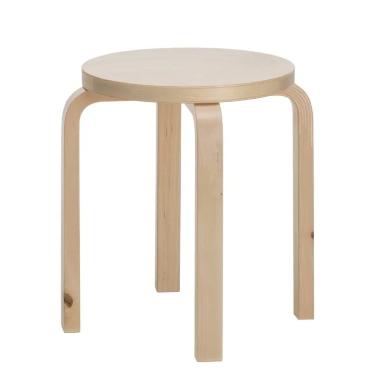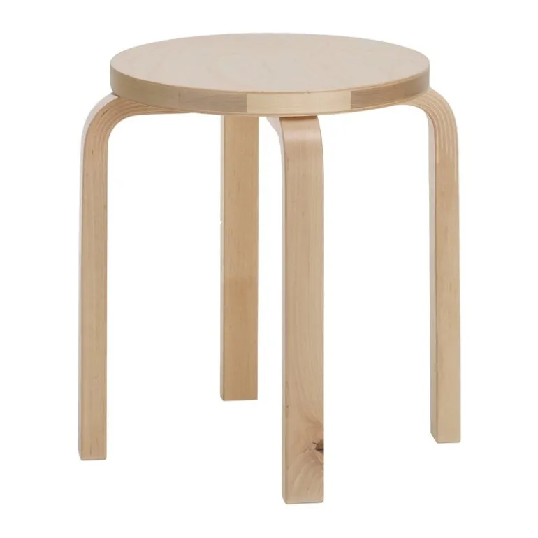 Arteks pall E60 hyllar björkträets autentiska skönhet: pallen är tillverkad av så kallad vildbjörk som visar materialets naturliga variation i sin helhet. Ytan kan ha synliga knutar, märken eller mörkare kärnved. I denna fyrbenade pall är både benen och den fanerade sitsen tillverkade av vildbjörk. Pallen är tillverkad i Finland.