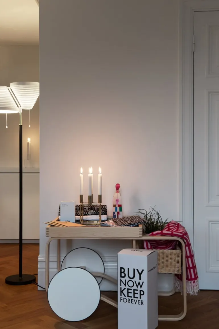 Serveringsvagn 900, formgiven av Alvar Aalto för Artek, är en finsk designklassiker med vackra referenser till den brittiska tekulturen och till japansk arkitektur och trähantverk. Alvar Aalto skapade tevagnen till världsutställningen i Paris 1937. Serveringsvagn 900 består av en ram i böjd björk, stora hjul i plywood, en handgjord korg i rotting och en bordsskiva med kakel. Aalto formgav serveringsvagn 900 för hemmabruk och det står mycket riktigt en vagn i vardagsrummet i Villa Mairea, den ståtliga villan som Alvar Aalto ritade.