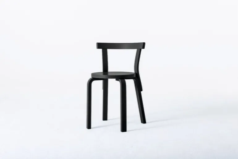 Stol nummer 68 från Artek är lätt att identifiera som en designklassiker skapad av Alvar Aalto. Den har den typiska runda sitsen och de karaktäristiska L-benen som är fästa direkt på sitsen. Det som skiljer Stol 68 från andra Aalto-stolar är det tunnare ryggstödet. Stol 68 är också stapelbar, upp till fyra stolar kan staplas för att spara utrymme.