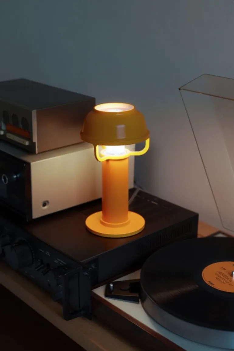 Precis som du kan förvänta dig av ljuskällor från Artek avger Kori-lamporna både direkt och indirekt ljus, vilket skapar en trivsam, välkomnande atmosfär samt belysning som efterliknar naturligt ljus: det mjuka skenet som kommer inifrån korgen påminner om kvällssolens strålar genom ett bladverk. Ljuskällorna i kollektionen tillverkas i Italien och är konstruerade för att vara tåliga och lättskötta, och metalldelarna kan enkelt avskiljas och återvinnas. Bordslampans ytskikt är pulverlackerat i en klar orangegul nyans.