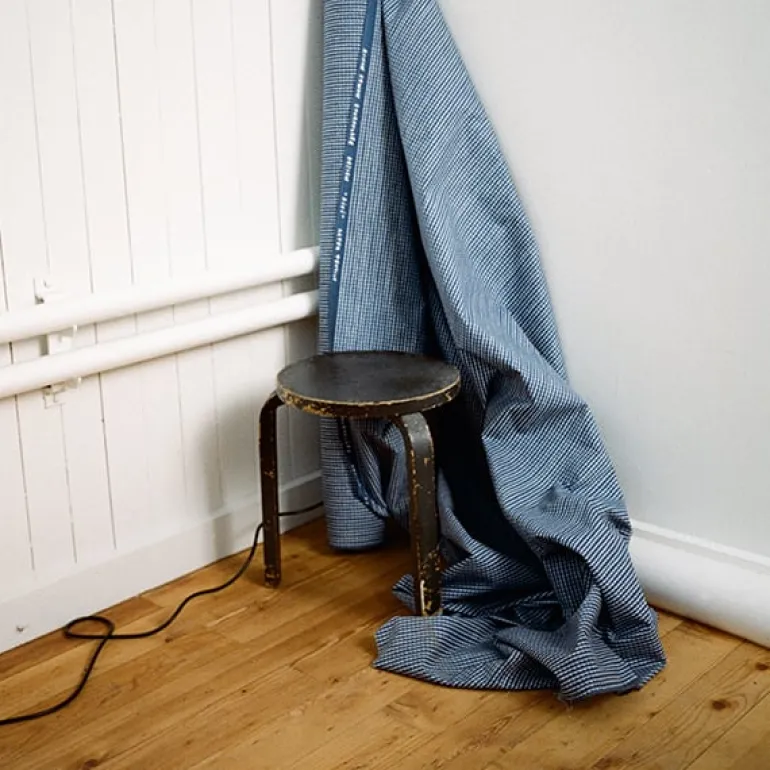 Rivi-tyget, designat av Ronan och Erwan Bouroullec för Artek, kännetecknas av sitt unika textilmönster, som består av rader med långa, parallella linjer och fina detaljer. Tyget är färdigskuret och tillverkat av stark bomullskanvas.