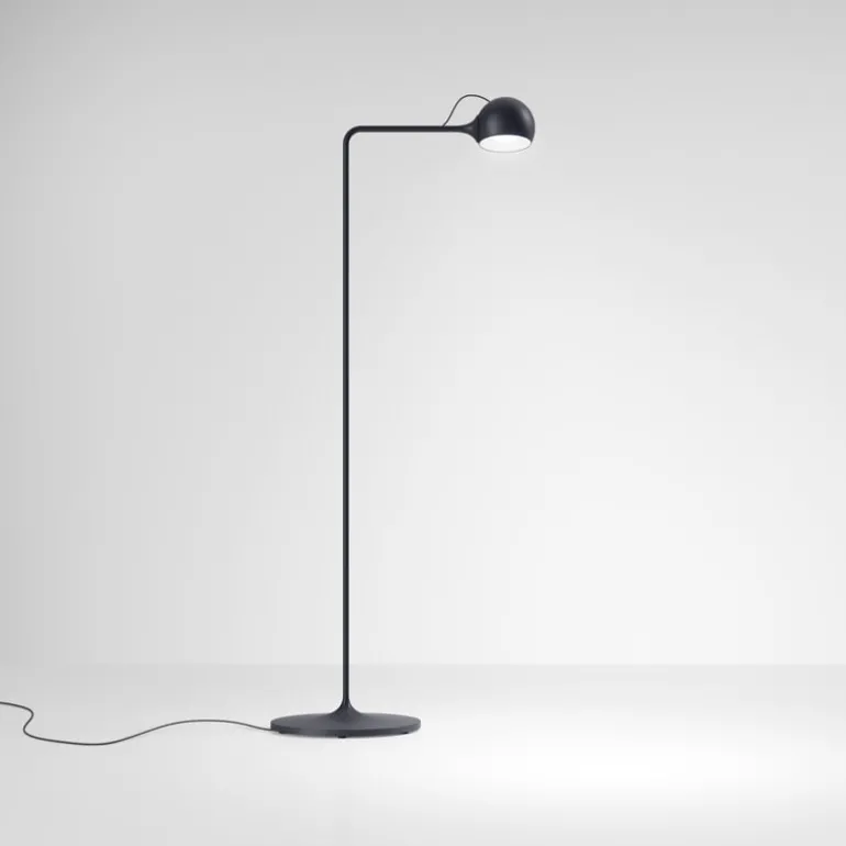 Artemides golvlampa IXA Reading är en industriinspirerad ljuskälla i metall som består av ett smäckert stativ och en rundad skärm med dimbar LED-enhet. Tack vare det justerbara lamphuvudet kan du rikta starkt eller dämpat ljus i olika riktningar, allt efter behov. IXA-golvlampan kan därför användas som mild, stämningsfull belysning i sovrummet eller vardagsrummet, men också som läs- och arbetslampa på kontoret.