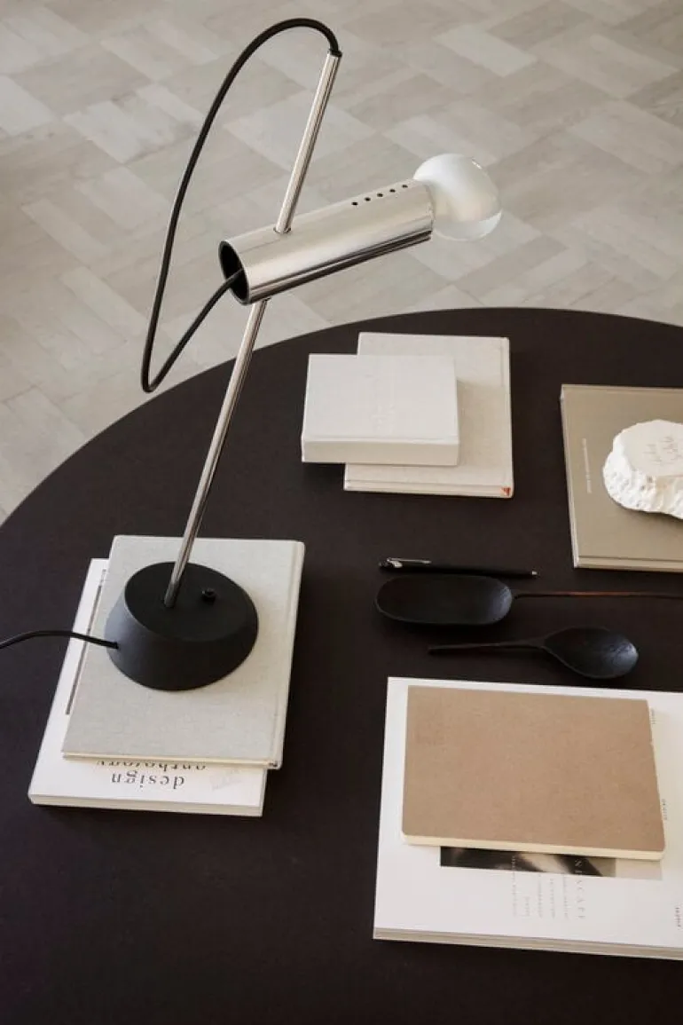 Asteps bordslampa Model 566 representerar den legendariske belysningsdesignern Gino Sarfattis rättframma stil i sin mest renodlade form. Den italienske formgivaren blev särskilt känd för sina visuellt effektfulla ljuskällor, och Model 566 är inget undantag. Bordslampan, som ursprungligen skapades 1956, ger ett fascinerande intryck med sin väl avvägda och samtidigt distinkta stil, och består av ett rör i polerat stål som ljuskällan har monterats på. Röret kan skjutas uppåt och neråt på foten och den kan därför enkelt ställas in i ett läge som passar både plats och stämning. Den eleganta bordslampan Model 566 passar lika bra i hemmet som i offentliga miljöer – från restaurangbord till hotellfoajéer.