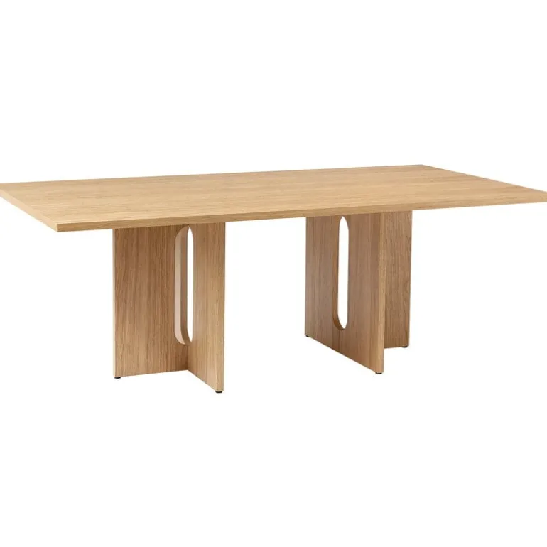 Audo Copenhagens matbord Androgyne är en charmig kombination av kontraster. Bordet är tillverkat av naturlig ekfaner och leker med både feminina och maskulina element – mjuka linjer och skarpa kanter, såväl som enkla och djärva silhuetter. Danielle Siggerud är formgivaren bakom det harmoniska, stadiga bordet Androgyne som är lika behagligt att se på som att sitta ned och äta vid.