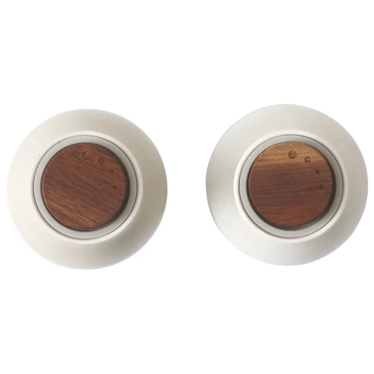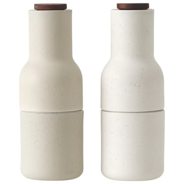 Setet består av två kvarnar i olika färger, som fulländas av två justerbara knoppar i trä. Kvarnarna är tillverkade i keramik och har en matt glasyr med små, mörka fläckar och ofullkomligheter som ger kvarnarna en härlig känsla av att vara hemtillverkade.