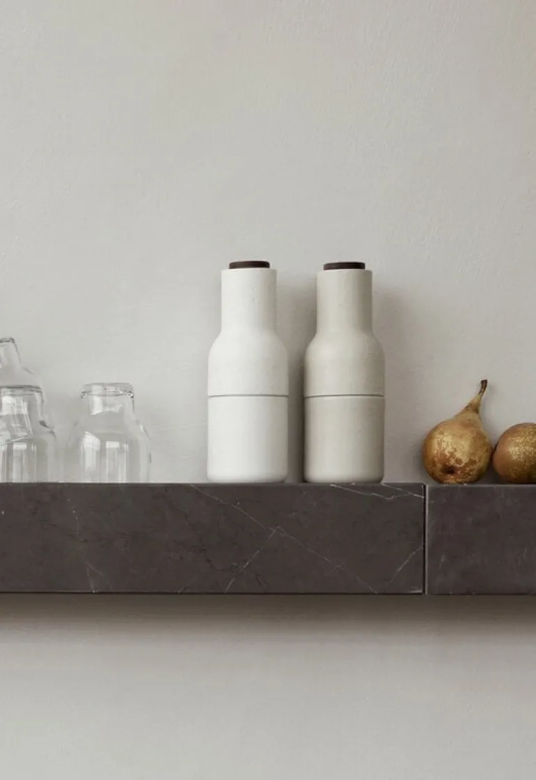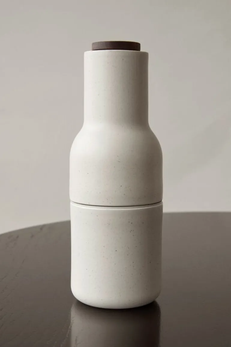Bottle Grinder har designats av Norm Architects för Audo Copenhagen och har en innovativ design jämfört med traditionella kryddkvarnar. De har en kraftig malningsmekanism i keramik som passande nog sitter högst upp på kvarnen, så du behöver inte oroa dig för att de malda kryddorna ska spridas ut över bordet. Den enkla, flaskformade designen är rolig, unik och passar bra i alla kök.