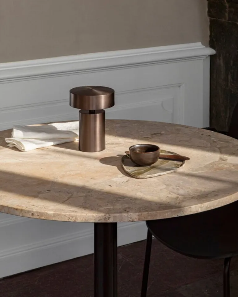 Cordless Portable är en sladdlös bordslampa som du enkelt kan placera var du vill, exempelvis på matbordet eller i ett rum som saknar elektricitet. Lampan laddas med hjälp av en USB-kabel, och den är även kompatibel med Audo Copenhagens Charging Board. För att skydda batteriets livslängd rekommenderar vi att lampan är avstängd när den laddas, och den ska heller inte vara ansluten till elnätet när den används.