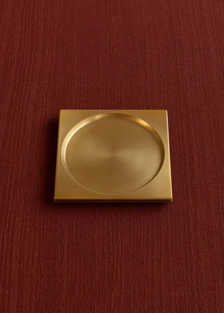 Audo Copenhagens Divot-bricka ger en lyxig touch till alla inredningar med sin eleganta mässingsfärg. Den vackra Divot kombinerar grundläggande geometriska former på ett charmigt sätt: den kvadratiska brickan har en låg cirkulär fördjupning i mitten av den. Den skulpturala brickan håller små skatter från nycklar och små kosmetika till smycken, men Divot-brickan fungerar också som ett iögonfallande dekorativt objekt i sig.