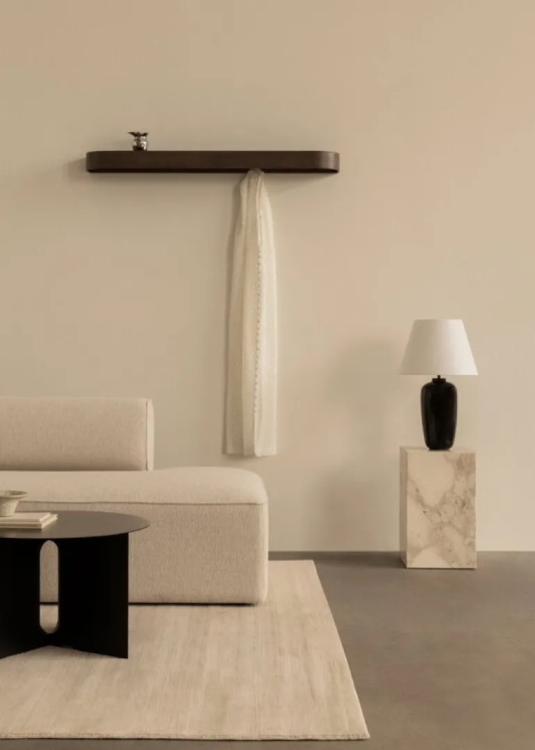 Audo Copenhagens Epoch-hylla är skapad för skönhet och funktionalitet. Vägghyllans hängkrokar är designade av Nina Bruun och är smart gömda bakom en mjukt svängd träpanel, som lugnar och förtydligar utrymmet – vi vet alla att en hall lätt kan hamna i kaos! Det övre planet fungerar som en praktisk hylla som ger förvaringsutrymme för många små hushållsartiklar. För detta ändamål är Epoch-hyllan perfekt för en mindre hall där utrymmet inte tillåter en byrå, men nycklar, solglasögon och hörlurar fortfarande måste läggas någonstans när du kommer hem.
