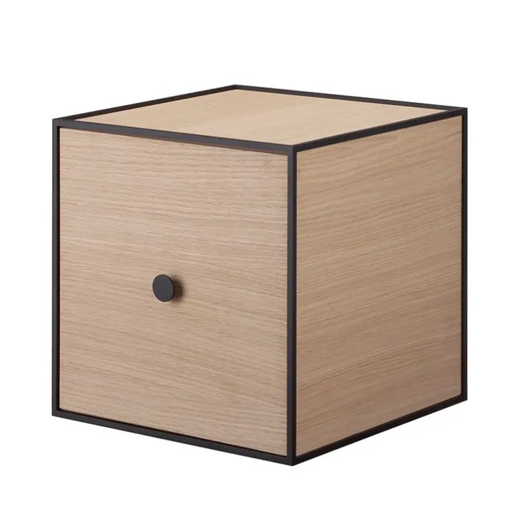 Det funktionella hyllsystemet Frame från Audo Copenhagen består av fyrkantiga lådor med svarta ramar. Frame-modulerna kan hängas upp på väggen eller ställas på golvet. Skapa ett eget Frame-hyllsystem som passar dina behov – möjligheterna är obegränsade. Finns i många olika färger och storlekar.