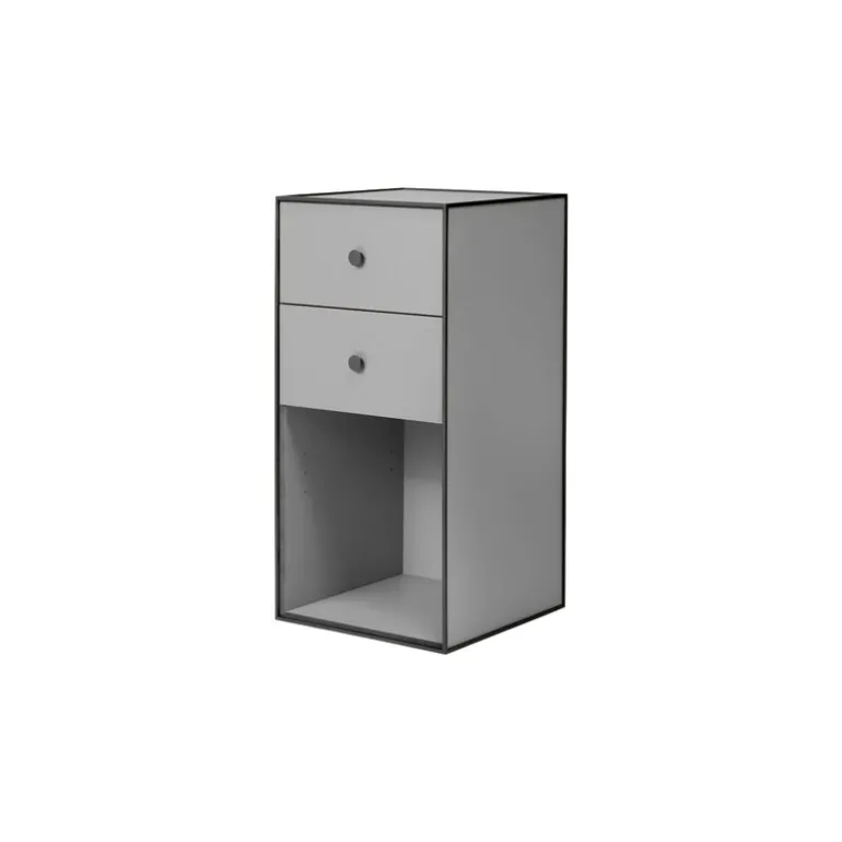 Sideboardet Frame från Audo Copenhagen är en del av varumärkets klassiska Frame förvaringssystem. Det minimalistiska skåpet består av en geometrisk förvaringslåda, komplett med två lådor och en öppen hylla, och kännetecknas av svarta metallramar som ger en trevlig kontrast till den annars reducerade designen.