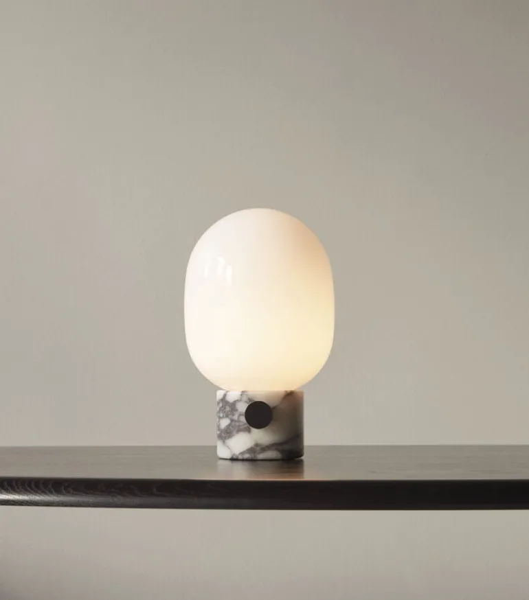 Bordslampan JWDA från Audo Copenhagen är en trivsam, elegant och kompakt ljuskälla med en fot i stål, en rund skärm i opalglas och en ratt som fungerar både som strömbrytare och dimmer. Den moderna bordslampan, som designats av Jonas Wagell, hämtar inspiration från de traditionella oljelamporna. JWDA lyser upp rummet med ett dämpat sken, och är ett perfekt komplement på soffbordet eller nattduksbordet.