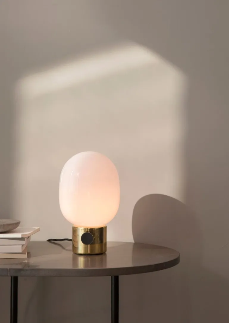 JWDA-bordslampan från Audo Copenhagen är en trivsam, elegant och kompakt ljuskälla med mässingsfot, rund skärm i opalglas och en ratt som fungerar som strömbrytare och dimmer. Den moderna bordslampan, som designats av Jonas Wagell, hämtar inspiration från de traditionella oljelamporna. JWDA förser alla utrymmen med mjukt ljus, och den blir det perfekta tillägget till soffbordet eller nattduksbordet.
