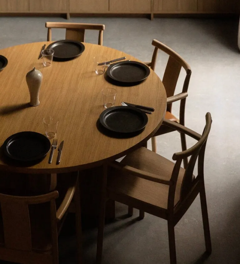 Merkur matstol med armstöd från Audo Copenhagen skapades från början åt Oslo Børs, en av Norges mest kända byggnader. En ledtråd finns faktiskt redan i stolens namn som anspelar på Merkurius, köpmännens och handelns gud i den romerska mytologin. Designstudion Skogstad & Wærnes ville skapa en stol som en hyllning till den ansedda byggnaden och dess sekellånga historia, men man ville också att stolen skulle göra intryck utanför den. Matstolen Merkurs mjuka linjer, tidlösa design och eleganta utförande i ek med exponerat ådringsmönster gör att stolen passar perfekt i köket och kontoret där hemma, men också i restauranger, mötesrum och lobbyer.
