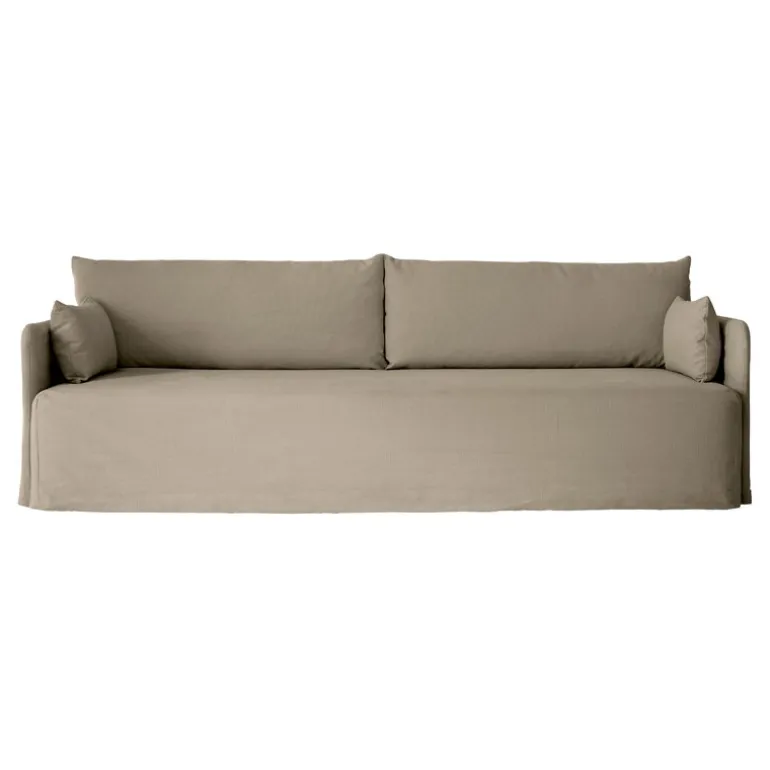 Offset 3-sits soffa kommer med ett avtagbart och tvättbart löst överdrag. Du kan förlänga soffans livslängd genom att byta ut ett slitet överdrag mot ett nytt – och med ett extra överdrag kan du uppdatera soffans utseende när du känner för det. Klädseltyget är tillverkat av en vacker och hållbar bomulls-linneblandning, och de mjuka kuddarna har fyllts med fjädrar och skumgranulat.