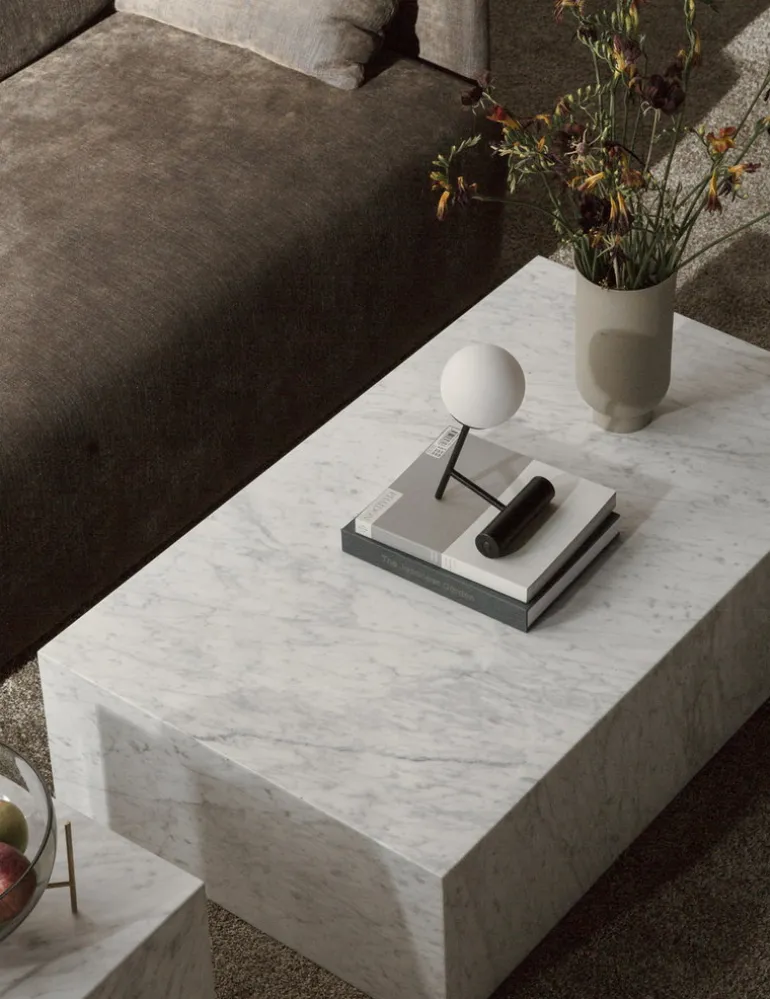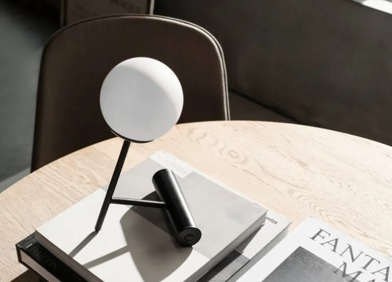 Audo Copenhagens lampa Phare, designad av Stanislaw Czarnocki, är en sladdlös och bärbar bordslampa vars geometriska design kombinerar en sfärisk diffusor med en diagonal metallbas. Den inbyggda LED-lampan i Phare drivs av ett uppladdningsbart batteri. Lampan sprider ett jämnt ljus genom den ogenomskinliga skärmen.