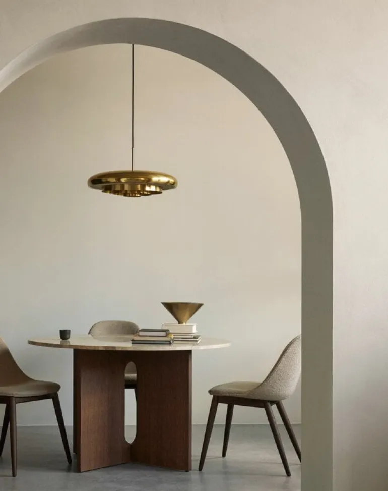 Audo Copenhagens taklampa Resonant är en minimalistisk och slående blickfångare som designades av Alf Svensson och Yngvar Sandström. Den eleganta lampan har en böjd skärm som riktar bländfritt ljus nedåt, vilket skapar en varm, inbjudande atmosfär runt den. Den skulpturala Resonant är den perfekta stämningshöjaren för hemmet såväl som i offentliga utrymmen, från hotellfoajéer till restauranglounger. Taklampan är tillverkad av lyxig polerad mässing, som över tid kommer att få en charmig patina – vilket bara lägger till mer elegans till utseendet på armaturen.