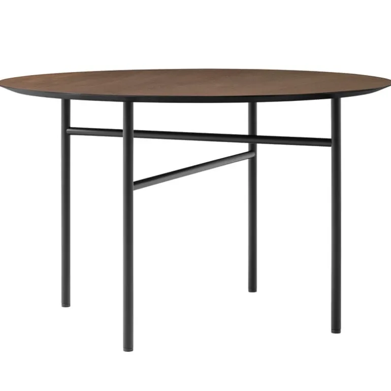 Bordet Snaregade, från Audo Copenhagen, har en elegant och grafisk design som mycket väl kan bli en framtida klassiker. Den har en enkel bordsskiva i ekfaner och eleganta stålben som tillåter gott om benutrymme. Bordet Snaregade kan användas som ett stiligt skrivbord eller matbord i många olika inredningar.