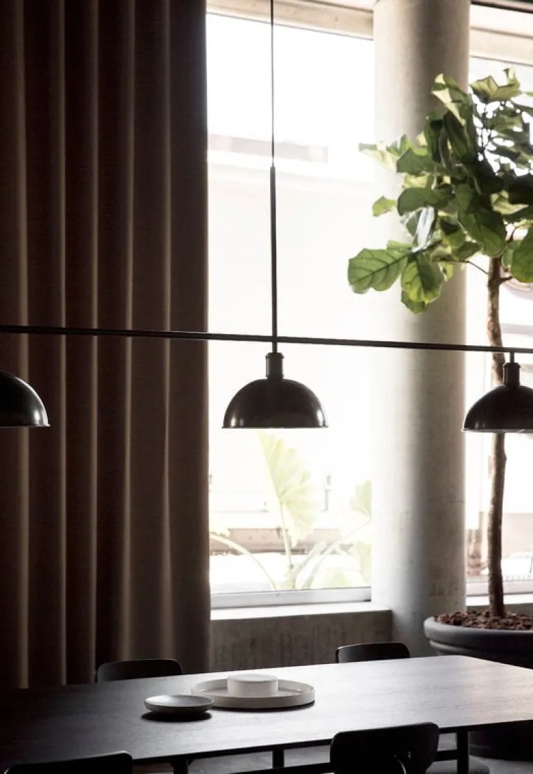 Bordet Snaregade från Audo Copenhagen har en elegant, grafisk design som mycket väl kan bli en framtida klassiker. Den har en enkel bordsskiva i antingen ekfanér eller linoleum och eleganta stålben som ger gott om benutrymme. Bordet Snaregade kan användas som ett stiligt skrivbord eller matbord i många olika inredningar.