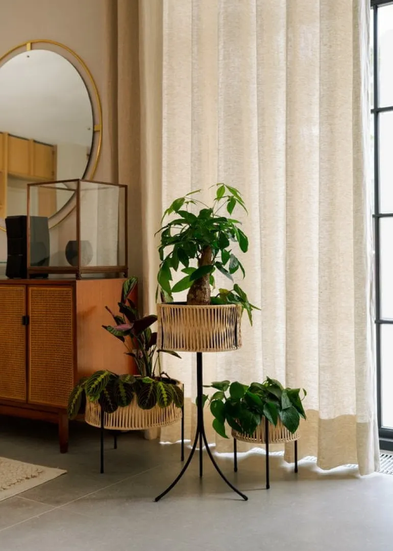 Blompiedestalen Umanoff, från Audo Copenhagen, charmar betraktaren med elegant, svart stål och handvävd rotting. Den höga blomlådan är designad av Arthur Umanoff och ger dina växter ett modernt hem som kan användas både inomhus och utomhus.